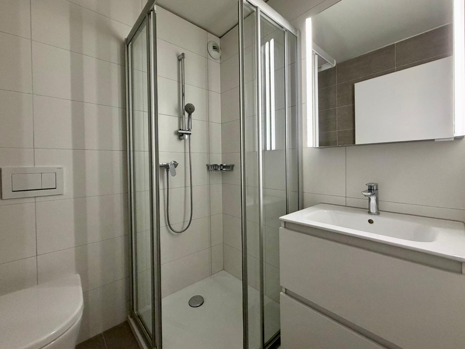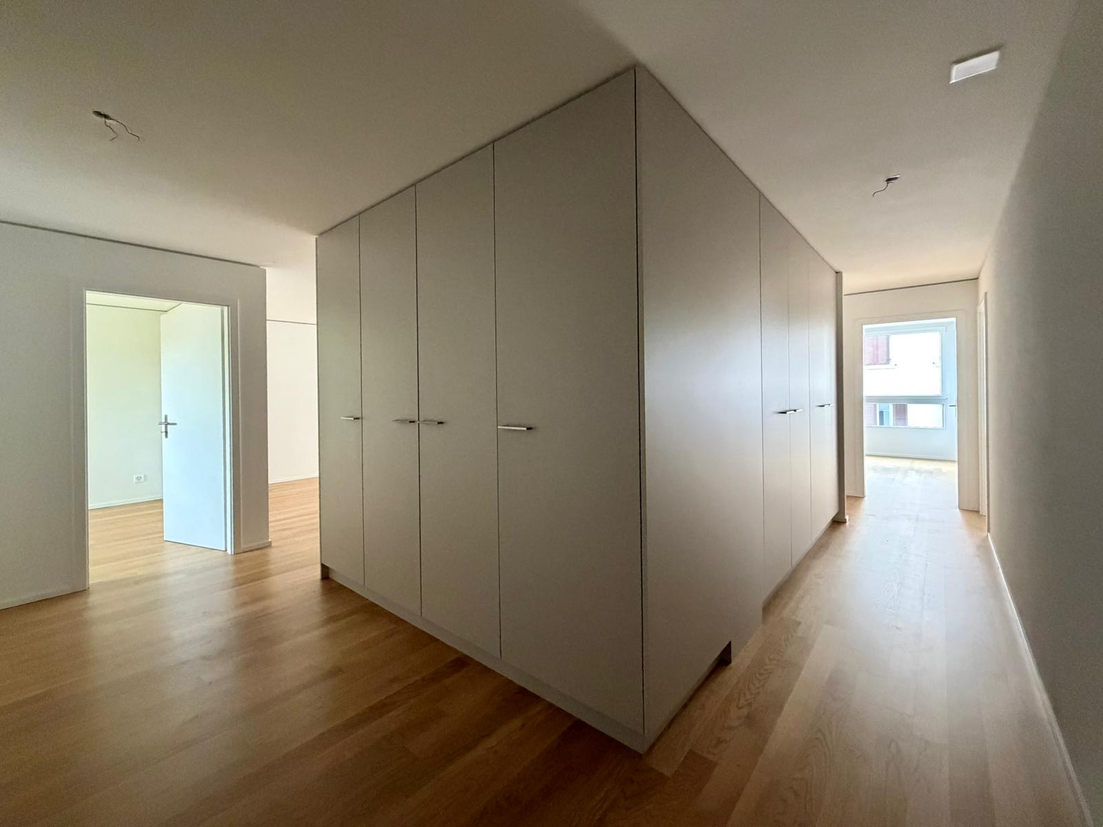 L’appartement s’ouvre sur un hall d’entrée accueillant menant à une cuisine moderne ouverte sur un vaste séjour et une salle à manger, formant un espace de vie chaleureux et lumineux. Il comprend également une chambre parentale avec salle de bain privative et baignoire, deux chambres confortables, une seconde salle de douche, ainsi qu’un réduit et une colonne de lavage intégrée. De nombreuses armoires murales offrent des solutions de rangement pratiques au quotidien.