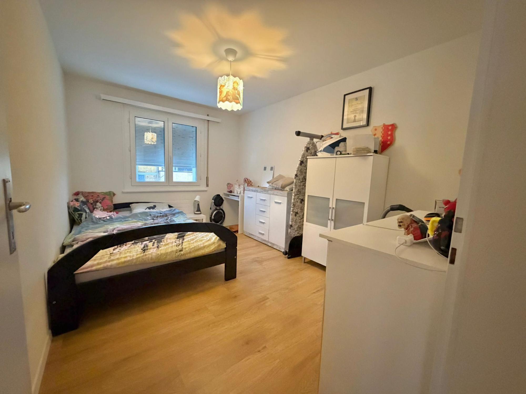 Nous proposons à la location un appartement de 4 pièces, situé au 1er étage d’un immeuble idéalement placé, à proximité de l’école des Foulets ainsi que des arrêts de bus.