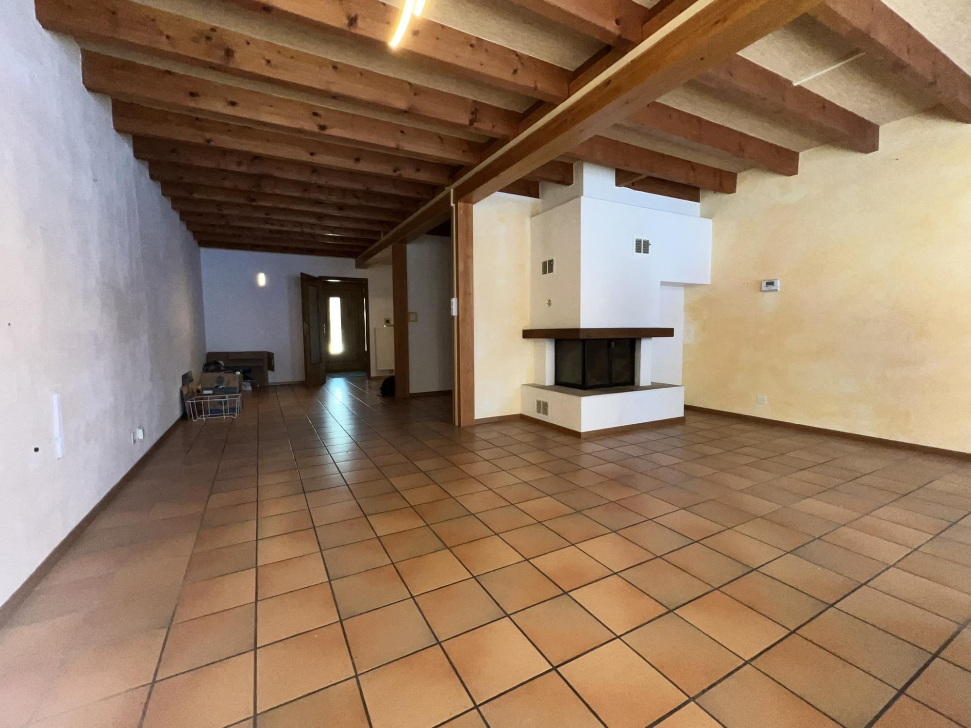 Cette villa de 4.5 pièces, pleine de charme et de caractère, propose une atmosphère chaleureuse et des espaces pensés pour le confort au quotidien. Dès l’entrée, on ressent une ambiance accueillante, avec une distribution fluide des pièces et de beaux volumes. Le grand salon, véritable pièce maîtresse, est agrémenté d’une cheminée apportant charme et confort à l'espace de vie, et s’ouvre directement sur la terrasse, parfaite pour profiter de l’extérieur en toute simplicité.