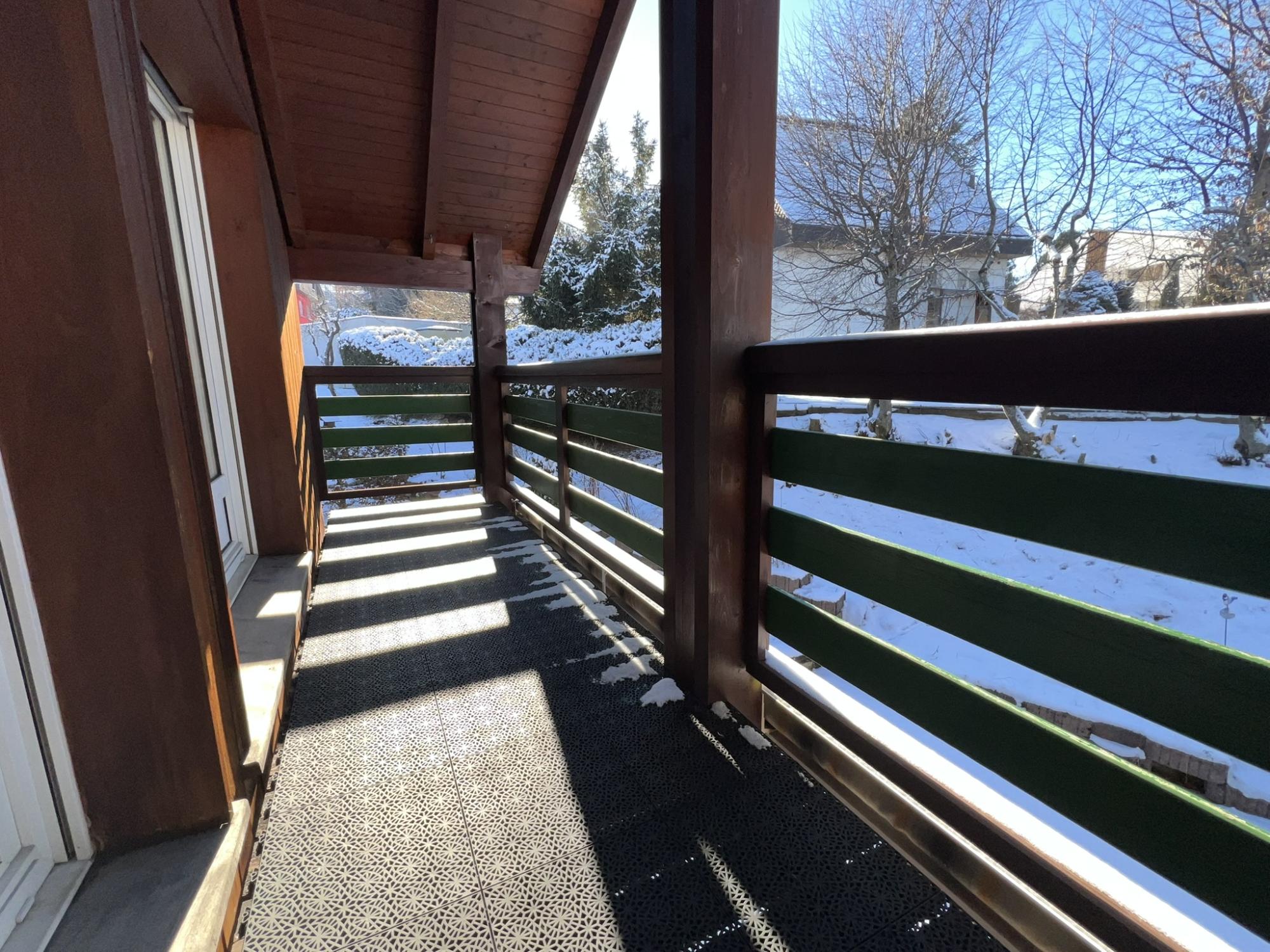 À l’étage, l’espace nuit se compose d’une grande chambre, de deux chambres d’enfants, chacune dotée d’une petite mezzanine qui ajoute une touche ludique et astucieuse, ainsi que d’une salle de bains avec WC et baignoire. Un hall et un balcon complètent ce niveau.